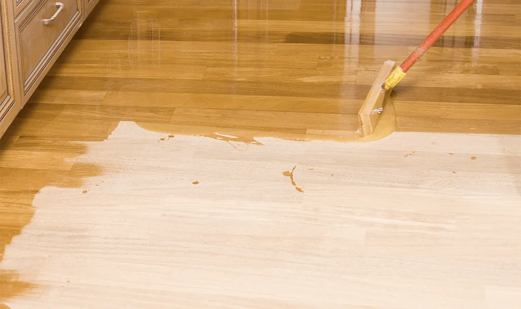 For refinishing, we carefully sand your floors to the bare wood, ensuring a smooth, even surface.